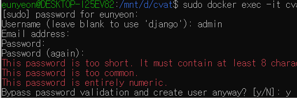 sudo docker exec -it cvat_server bash -ic 'python3 ~/manage.py createsuperuser'