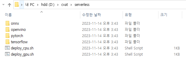 설치한 /CVAT/serverless 안에 폴더들을 하나씩 확인해보면 모델들을 확인 할 수 있습니다.