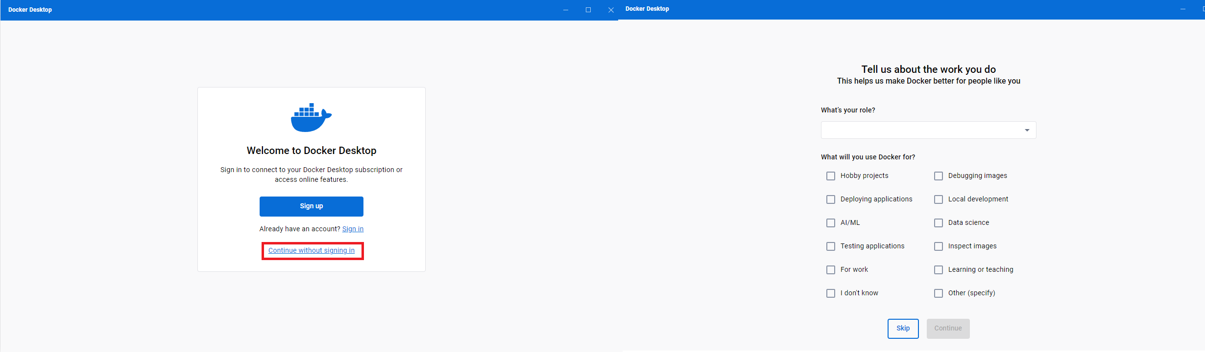 Tell us about the work you do 물음에 Skip 또는 간단히 답을 체크한 후 넘어가줍니다.