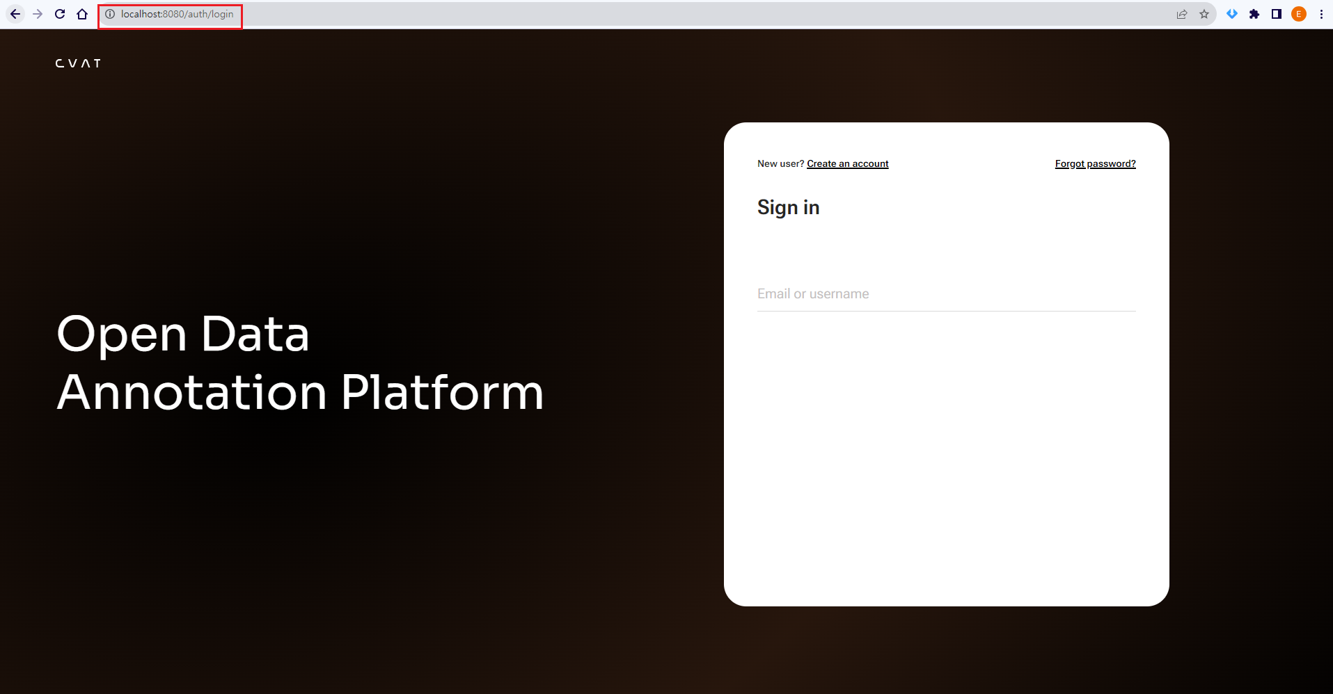 잘 따라오셨다면 localhost:8080접속 시 cvat 웹페이지가 나올겁니다.