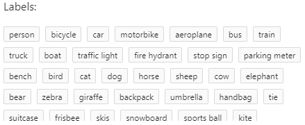 YOLOv3 모델에는 person 외에도 다양한 객체들이 포함되어 있습니다. 데이터셋에 맞게 레이블링을 진행해보세요.