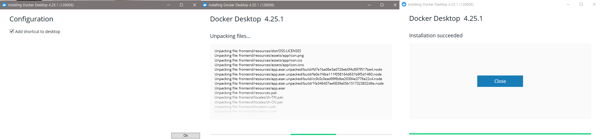 여기까지 Docker와 Ubuntu 18.04 설치가 완료되었습니다. 여기에서 잠깐 Docker desktop을 실행해보겠습니다.